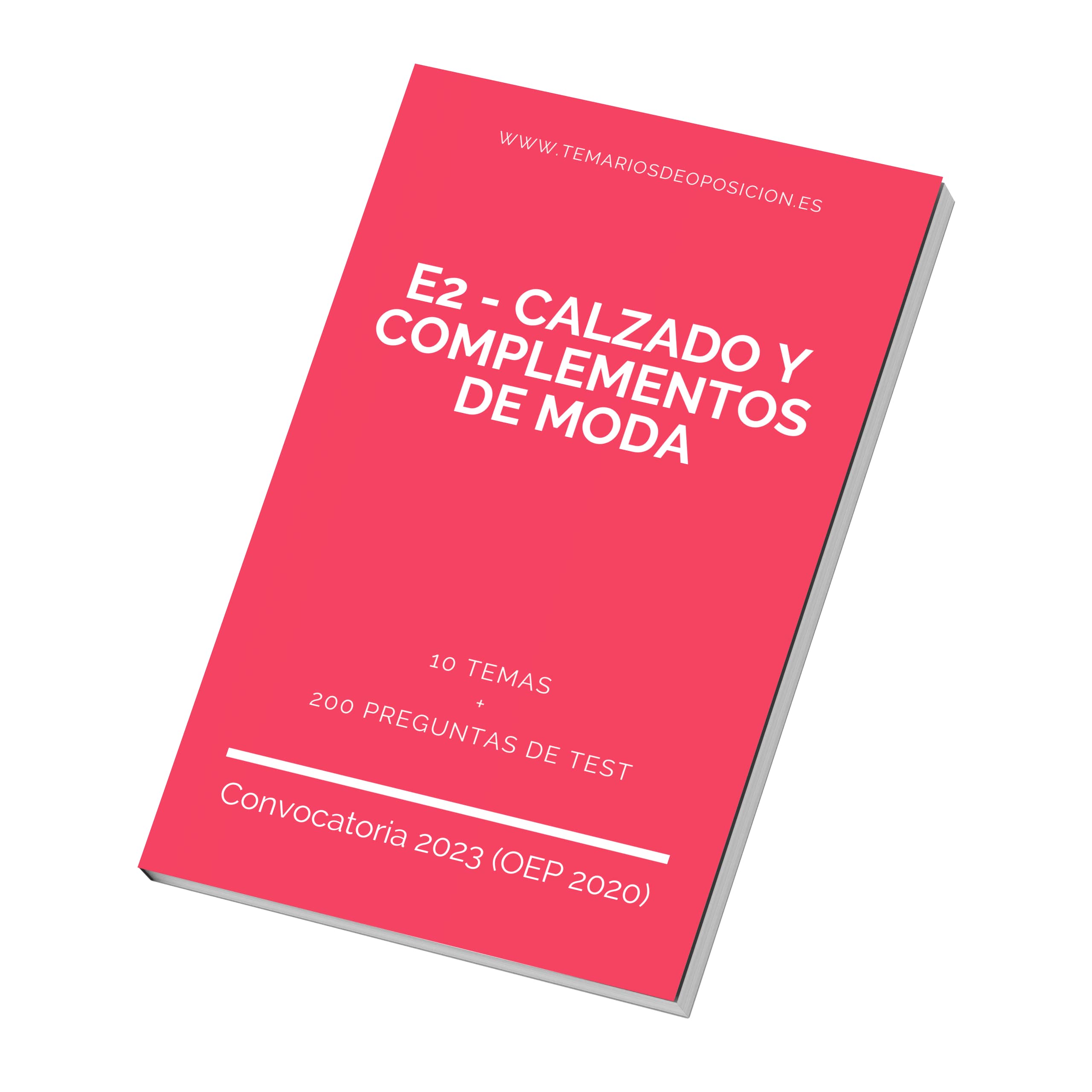 Este temario, formado por 10 temas, ha sido diseñado con el propósito expreso de ofrecer un material completo y profundamente didáctico que permita a los candidatos enfrentarse con éxito a la fase de oposición del proceso selectivo de la especialidad E2 – CALZADO Y COMPLEMENTOS DE MODA para ingreso por acceso libre y acceso por promoción interna como personal laboral fijo sujeto al IV Convenio colectivo único para el personal laboral de la Administración General del Estado.
