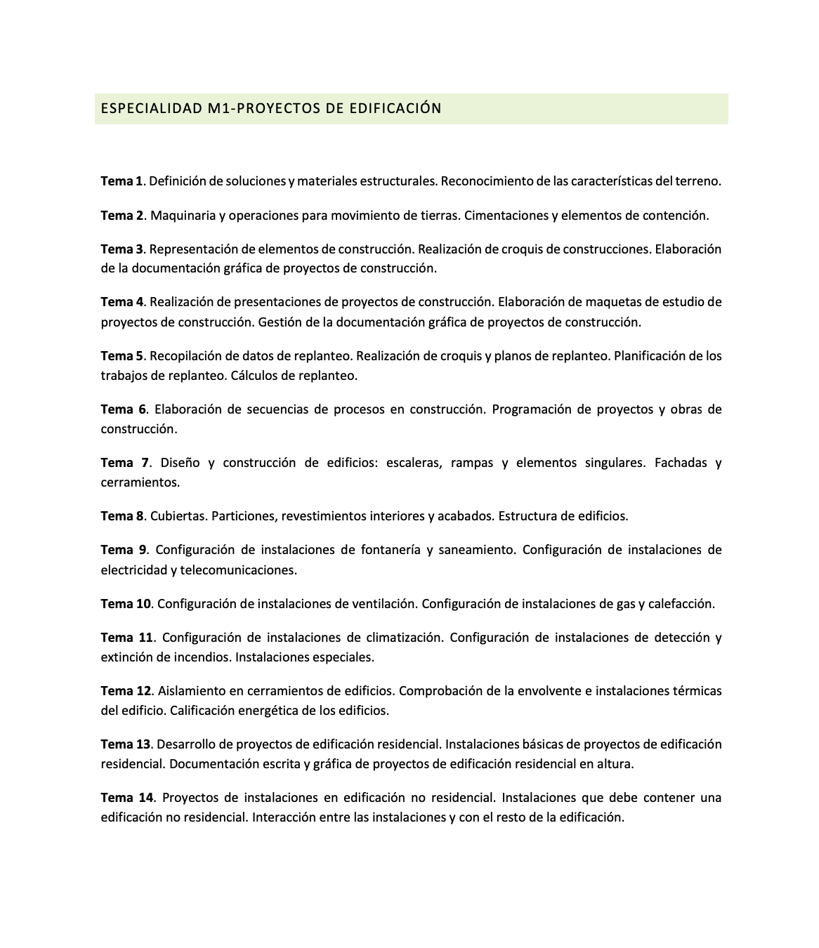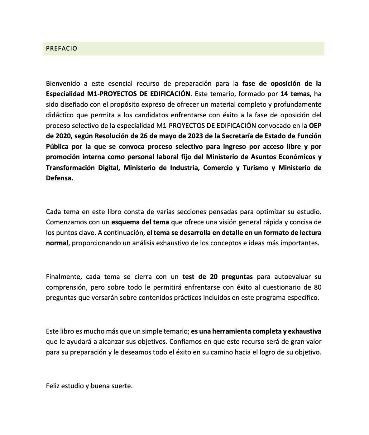 Este temario de 14 temas está concebido para proporcionarte un recurso completo y profundamente didáctico con el que superar con éxito la fase de oposición de la Especialidad M1–PROYECTOS DE OBRA CIVIL, en línea con la nueva convocatoria del Ministerio de Transportes y Movilidad Sostenible (Resolución de 22 de septiembre de 2025, de la Subsecretaría). Su organización favorece un estudio eficiente, con contenidos estructurados para que avances con seguridad.
